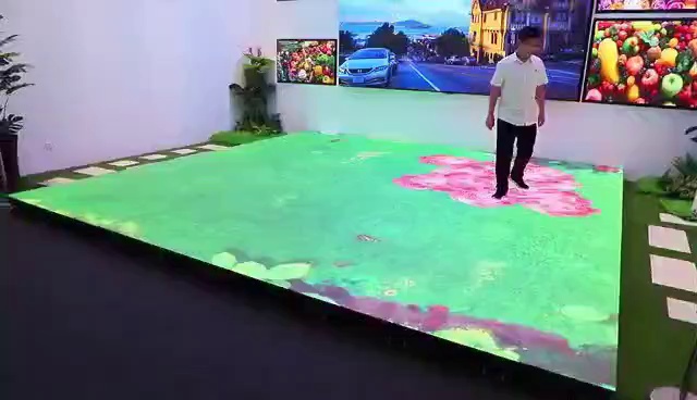 The floor led screen is a device displayed on the ground. It adopts a video synchronization control method to achieve high-resolution soft color effects, and the light source uses a super bright semiconductor light-emitting diode (LED display). On the original LED display It adopts a high-strength mask, coupled with a strong aluminum alloy bracket, so that it can be stepped on at will.